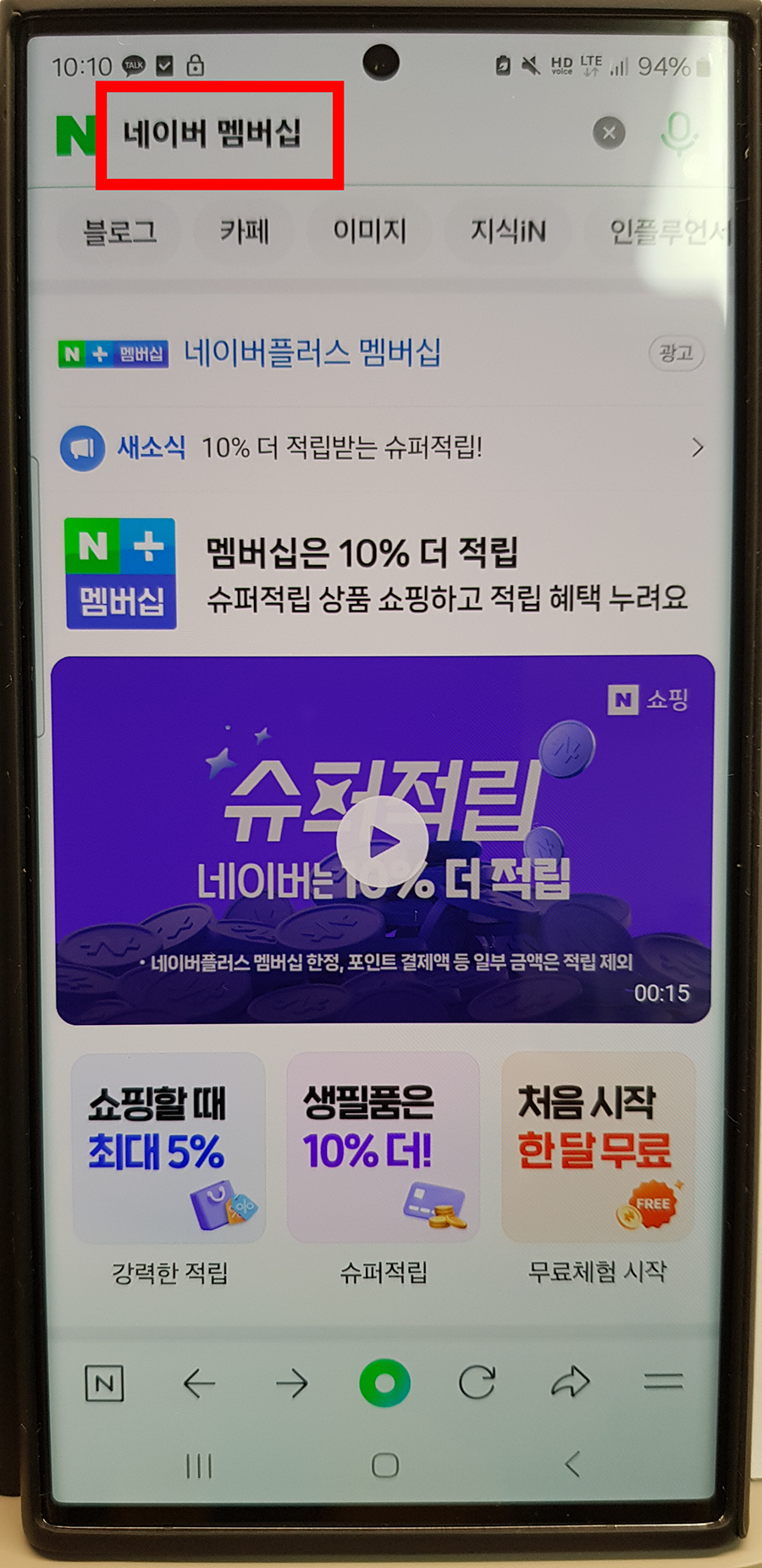 검색창에서 네이버 멤버십(=네이버플러스 멤버십)을 검색합니다.