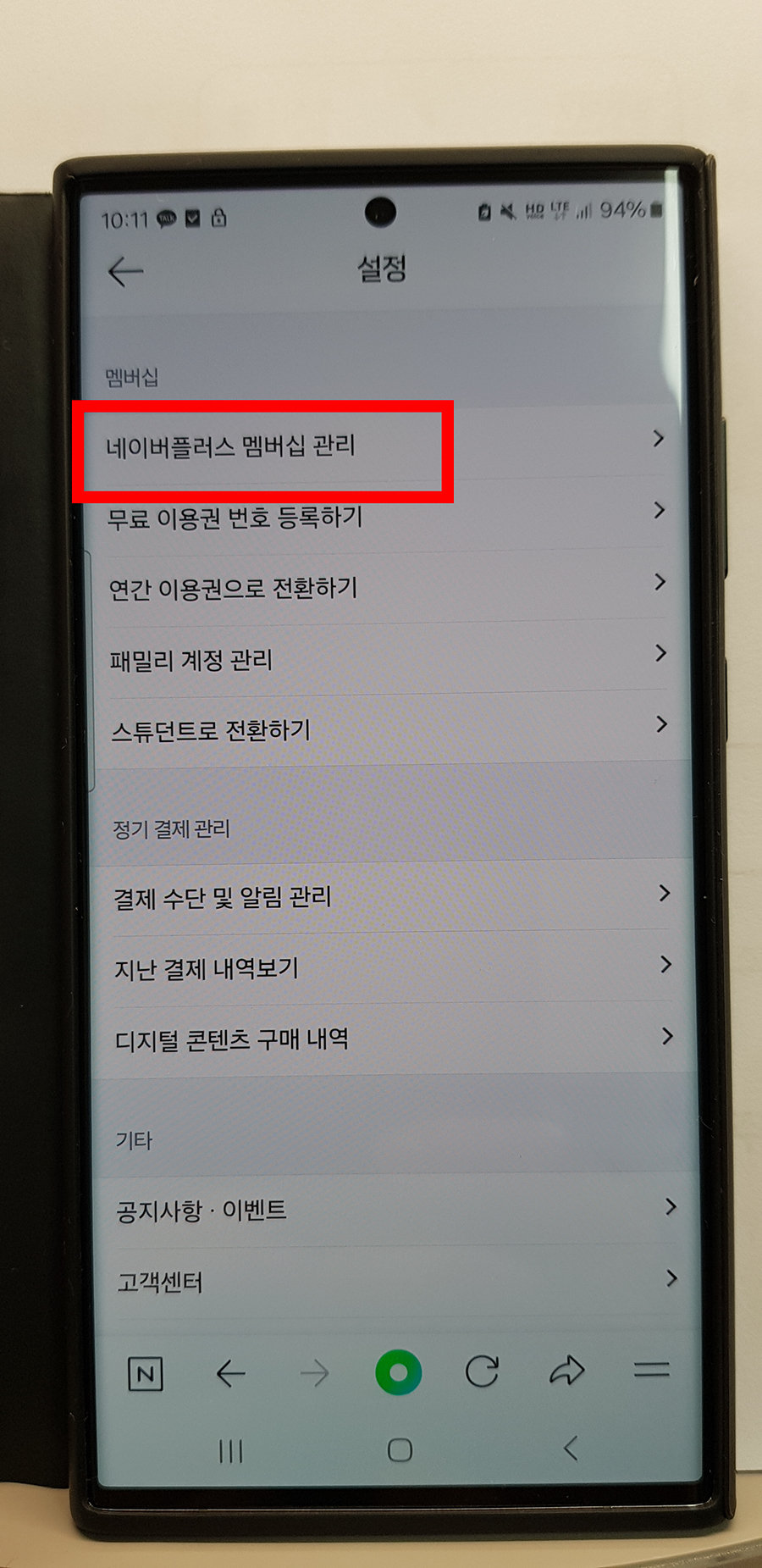 최상단에 네이버플러스 멤버십 관리를 클릭합니다.