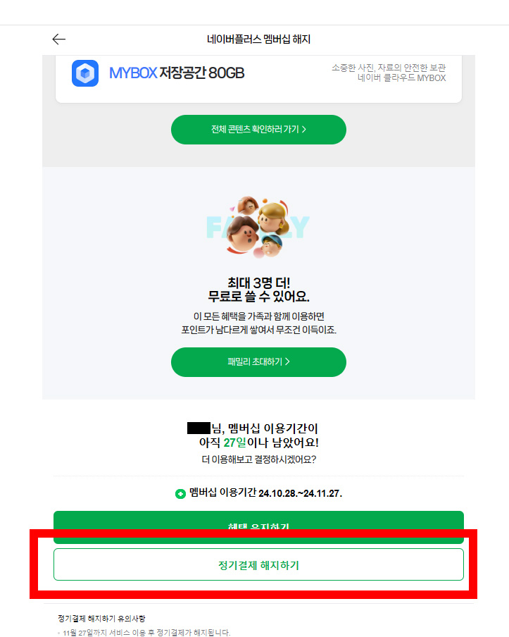5. 제일 하단에 '네이버플러스 멤버십' 해지하기를 클릭합니다.